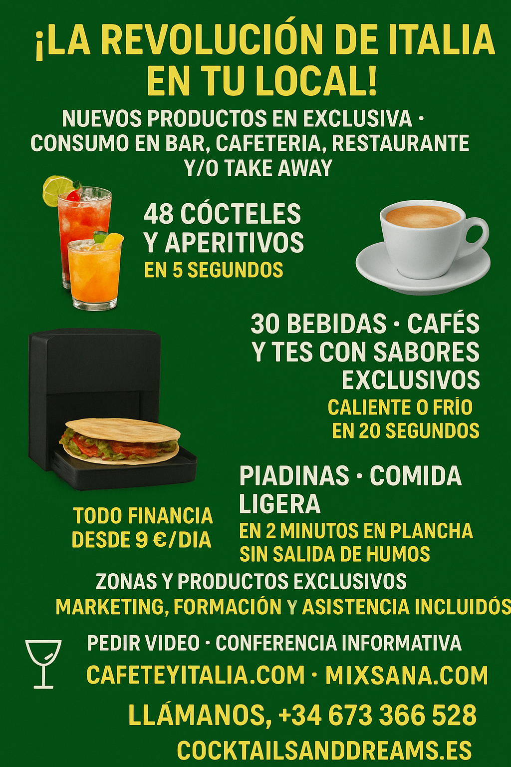Descubre cómo triplicar los beneficios de tu bar con nuestros productos innovadores. Cócteles y mocktails, piadinas y pinsas, cafés y tés con gustos, sin necesidad de más personal. ¡Gana 10.000€ más al mes! Únete a CocktailsandDreams.org y transforma tu negocio en Barcelona.
